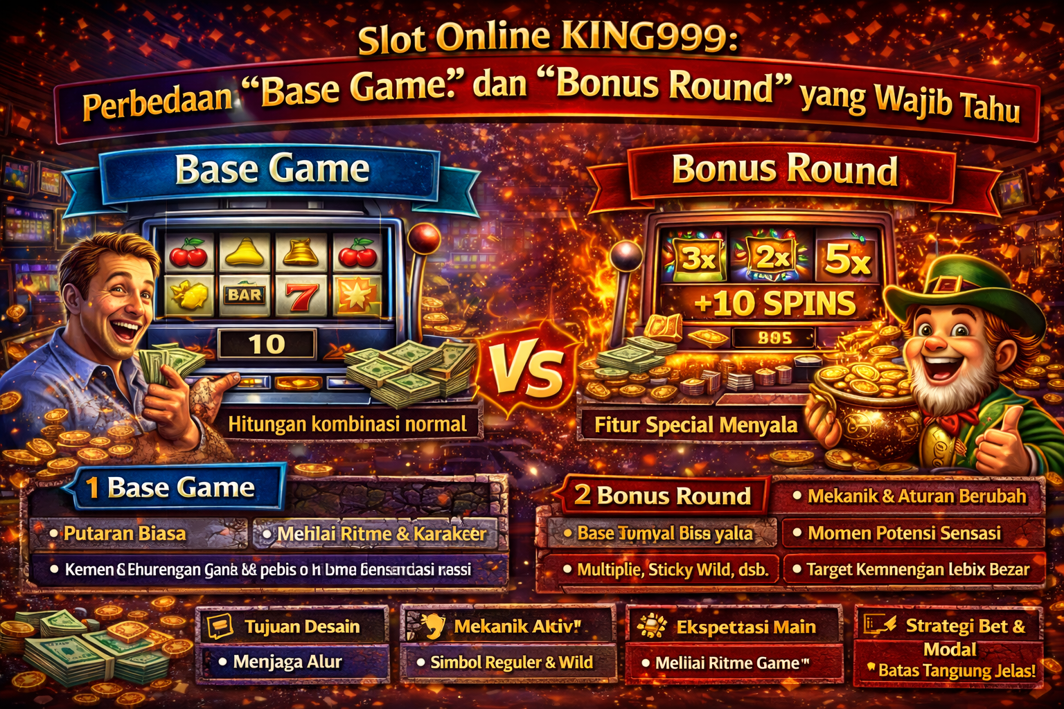 Artikel ini akan membahas perbedaan base game vs bonus round secara rapi dan mudah dicerna, khusus untuk konteks slot online seperti yang kamu temui di KING999.